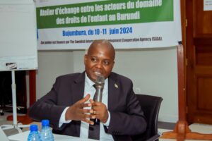 Me. Désiré BIGIRIMANA est revenu sur le processus d’élaboration et de formulation de l’avis de l’enfant pour atteindre la prise en compte de l’intérêt supérieur de l’enfant. Il a par ailleurs donné un éclairage aussi large du principe du respect de la vie, la survie, la sauvegarde de l’enfance qui englobe à la fois les aspects physiques, mentaux, psychologiques, socio-économiques etc.